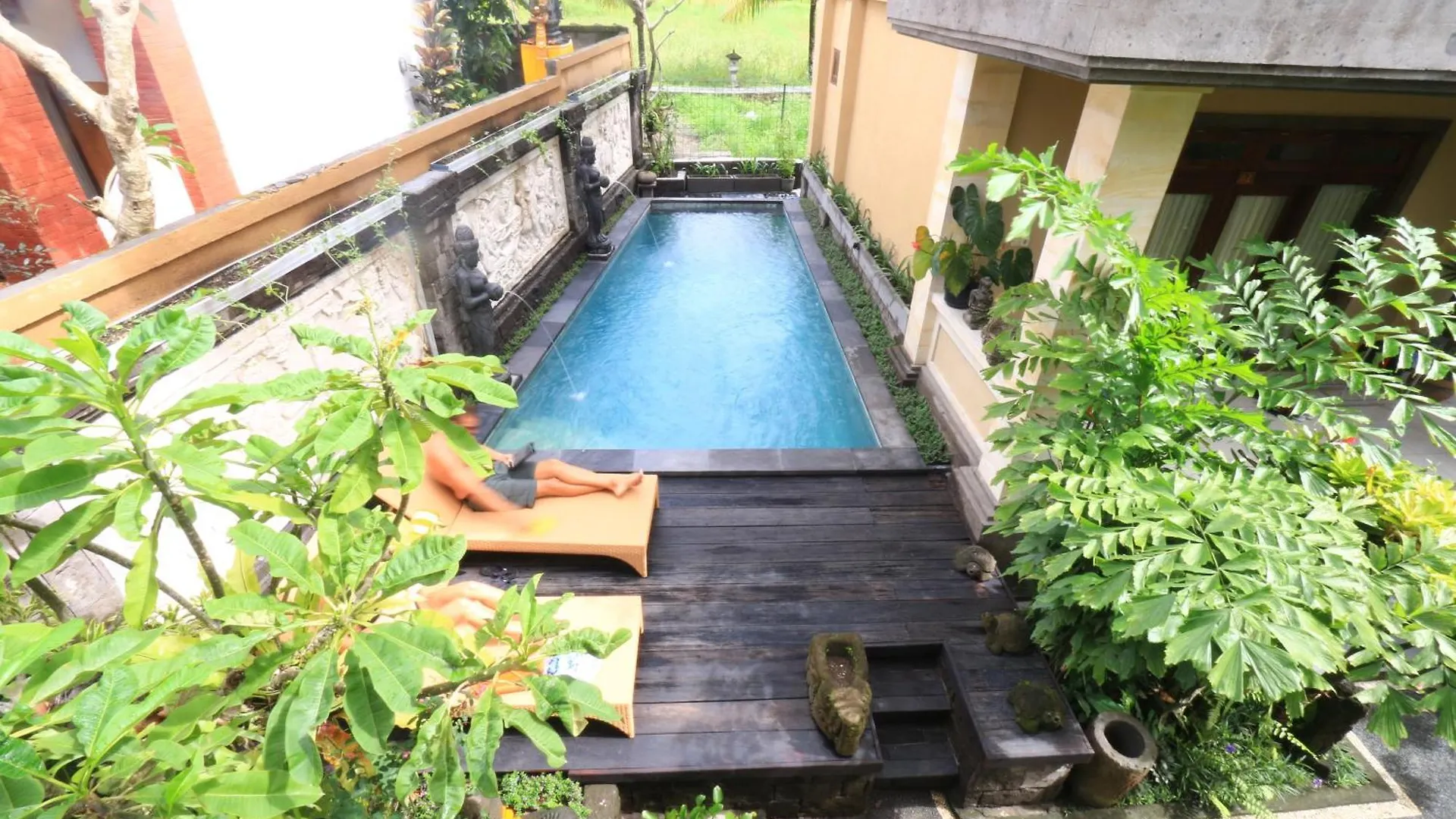 Doté d'une terrasse et d'une piscine, l'hotel Frangipani Bungalow Ubud se trouve à seulement 1 km de la Bibliothèque Pondok Pekak. L'hotel offre un stockage des bagages, il est situé assez proche du Palais d'Ubud.